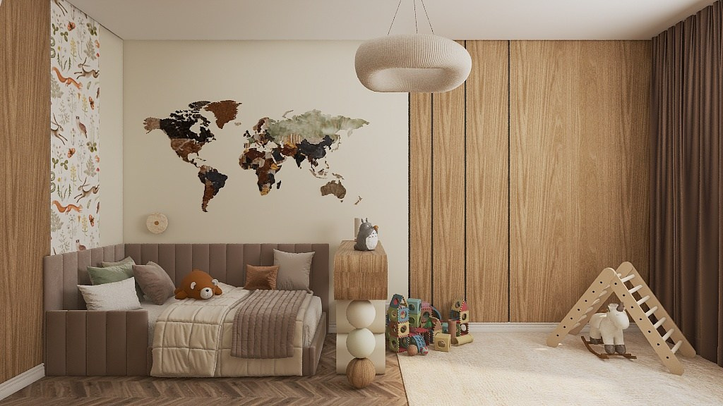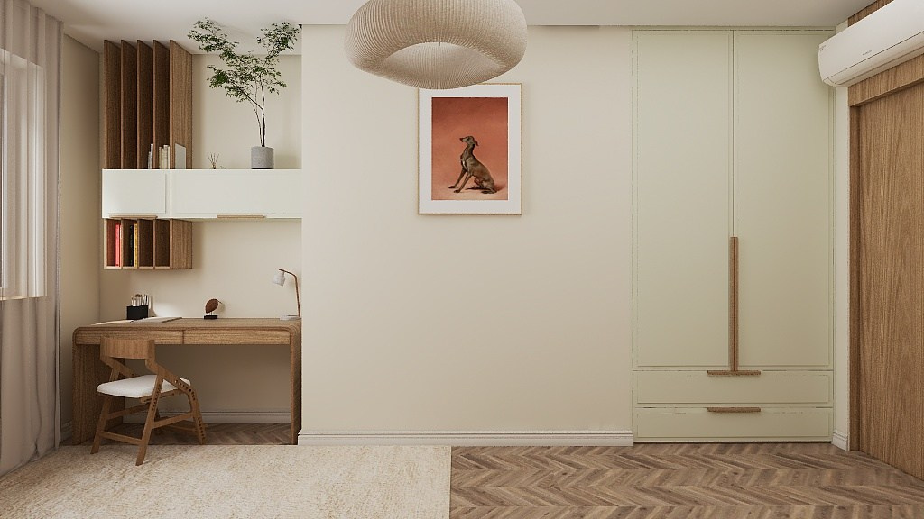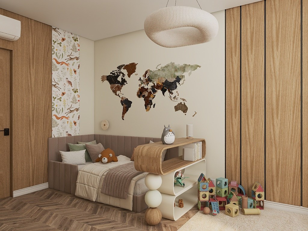 В спальне был добавлен гардероб, чтобы родители могли спокойно переодеваться, не выходя из спальни.