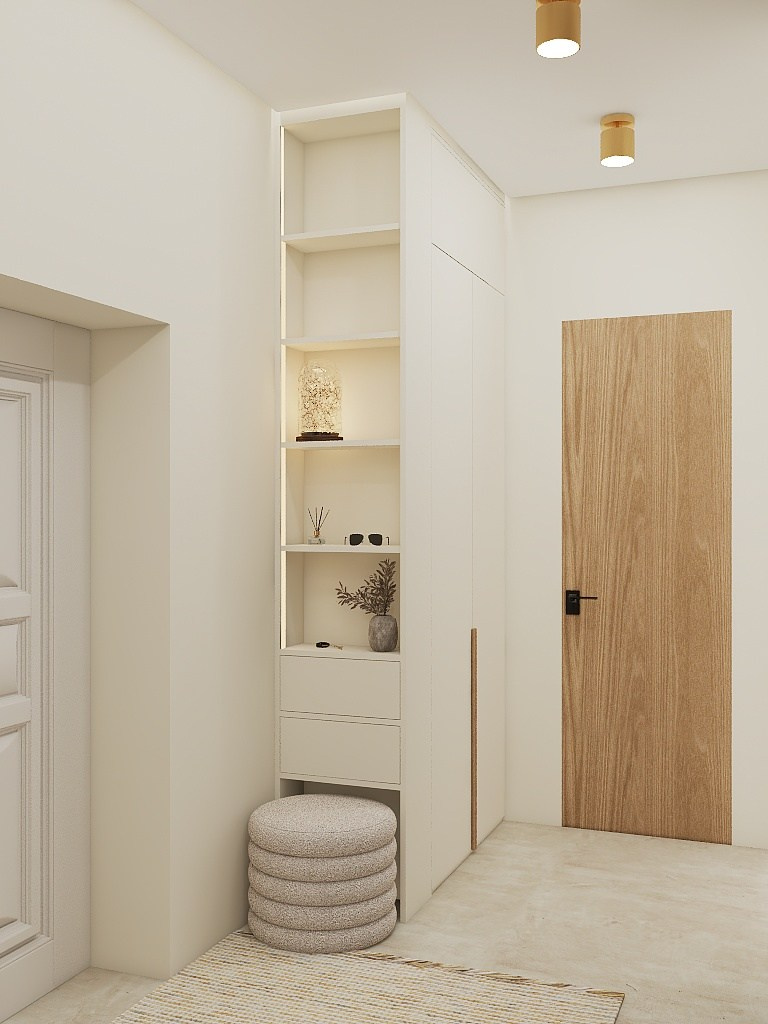 Еще в текущем жилье не хватало грамотного хранения, было нагромождение мебели и большая грязная зона на входе.
